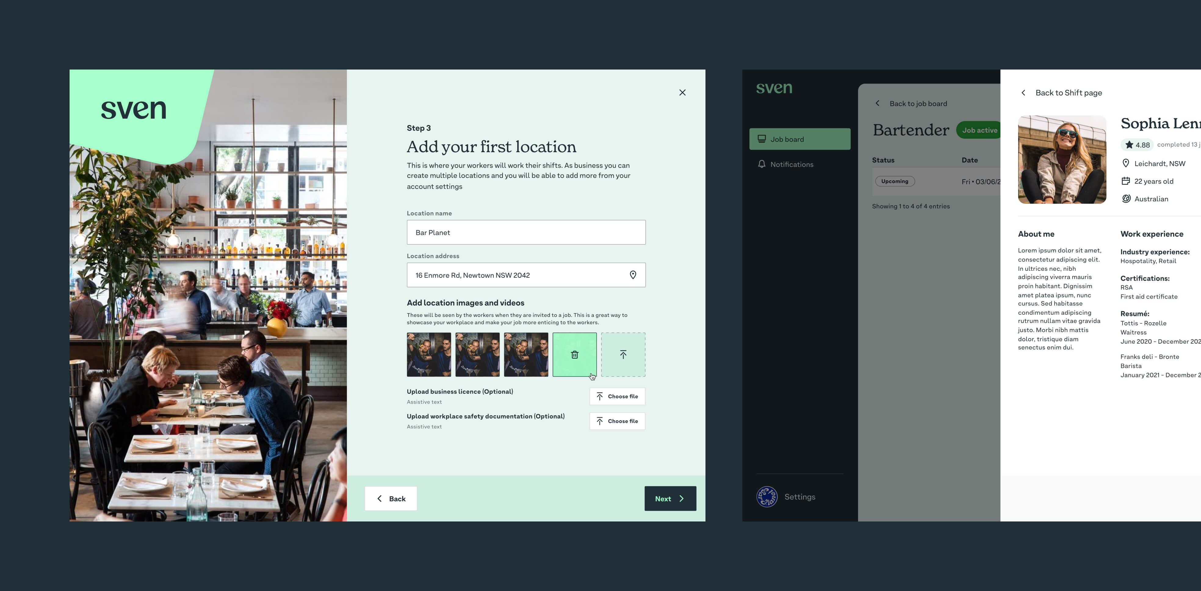 Sven is a workforce marketplace designed to help travellers in Australia quickly find and book casual shifts based on their location and job experience. The challenge was to create a product that travellers could jump into immediately often while on the move, and start finding work with minimal setup, friction, or learning curve. At the same time, the platform needed to support a two-sided marketplace, balancing the needs of workers looking for fast, flexible income with businesses needing reliable short-term staff.